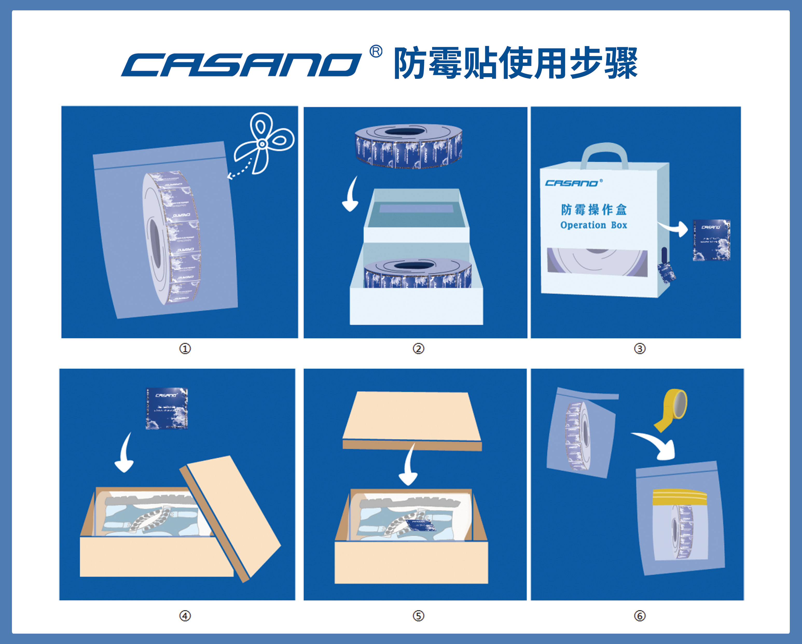 (1)搭配防霉操作盒使用CASANO防霉贴,避免过度暴露引发的防霉时效减弱;