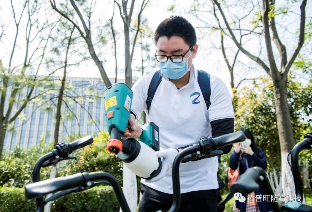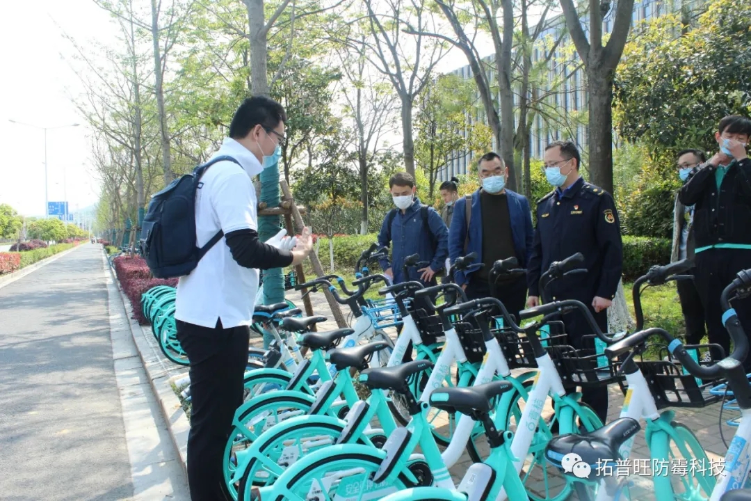 4月15日,南京市栖霞区城管联合青桔单车,共同开启“安全骑行守护栖霞 " 文明骑行体验活动。据介绍,疫情发生以来,为保障市民安全放心骑行,南京栖霞区联合青桔、哈啰、美团等多家共享单车公司,探索并引进单车消杀的新模式。 拓普旺生物科技有限公司应南京市政府,网约车协会邀请,助力滴滴青桔单车共同抗疫活动。