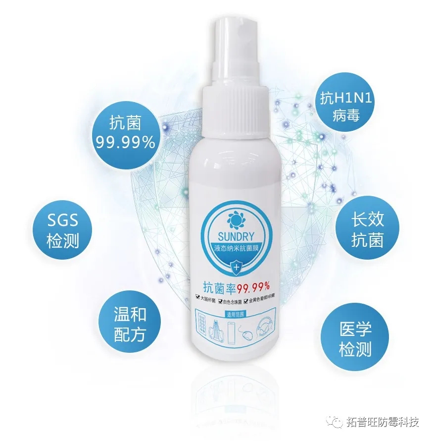 液态纳米抗菌膜是一款具备高抗菌性能的产品。专门用于喷洒在日常生活中所接触的物体表面, 形成一层持续消杀病毒、细菌、真菌活性的抗菌膜。