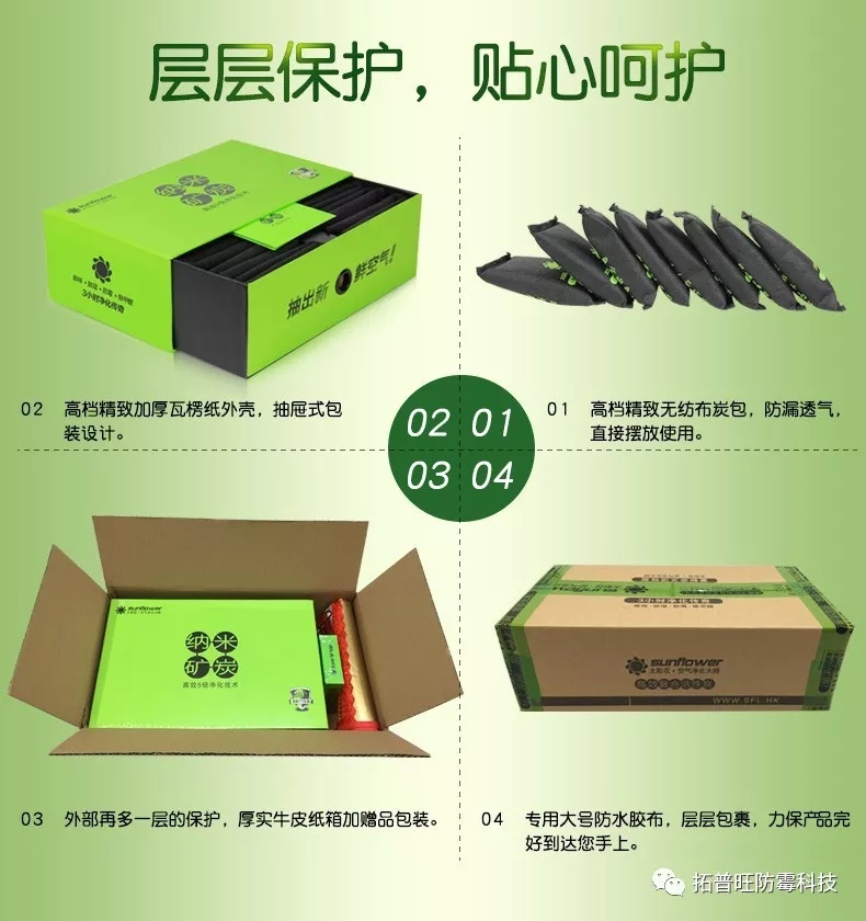 太阳花纳米矿炭使用前后均无味,无害,无二次污染。纳米矿炭的炭包能够吸附空气中的甲醛、氨、苯、二甲苯、TVOC、氡等99.5%室内有害气体分子,纳米矿炭能快速消灭装修异味,均匀调节空间湿度,对于居室、家具衣橱、书柜、鞋柜、鞋内、冰箱、卫生间、地板、鱼缸、汽车、空调、电脑、办公、宾馆及娱乐场所,都具有非常好的净化效果。