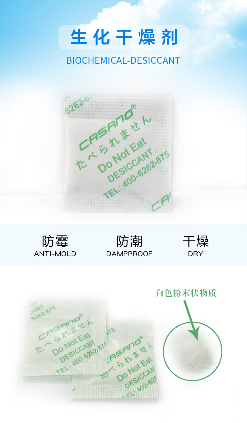 优势:自然降解,不污染环境,饱和吸湿率高,吸湿后变胶状,紧锁水分不反渗,不会对产品造成损害;植物淀粉提取物,不含DMF。
